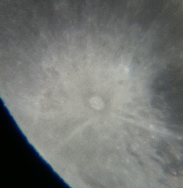 Fotografia n°3, oculare 10mm + Barlow lens x2, dettaglio del cratere Tycho.