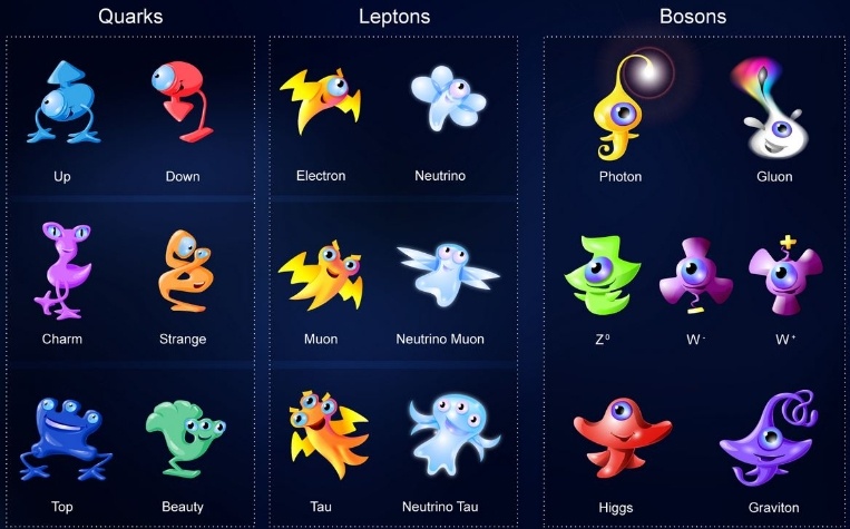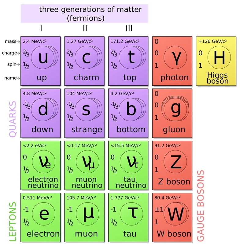 Il bosone di Higgs (nota al pubblico come la Particella di Dio), ipotizzato da oltre 40 anni contribuisce a rendere il “modello standard delle particelle” ancora più completo, permettendo agli scienziati di spiegare con eleganza i processi fisici dell’universo all’opera in ogni luogo e tempo (singolarità a parte). In sintesi possiamo affermare che a livello elementare, l’universo è formato da fermioni (quark, elettroni e neutrini tutti con spin semi-intero) e da bosoni (fotoni, gluoni e bosoni pesanti W±/Z, tutti con spin intero): uno zoo di particelle subnucleari che si possono tabulare come gli elementi della tavola periodica. Ci sono dodici particelle elementari (e relative anti-particelle) che compongono gli atomi dell’Universo o che ci piovono addosso di continuo dallo spazio profondo come raggi cosmici: sei quark (up, down, charm, strange, top e bottom), tre leptoni (elettrone, muone e tauone) ed associati neutrini (neutrino elettronico, muonico e tauonico). Esse interagiscono fra loro attraverso quattro forze fondamentali: in ordine decrescente di intensità sono l’interazione forte, elettromagnetica, debole e gravitazionale. L’umanità conosce molto bene da sempre gli effetti di quest’ultima che fu matematicamente modellata da Newton nel XXVII secolo e migliorata da Einstein ad inizio 900 con la relatività; anche gli effetti delle forze elettromagnetiche si manifestano da sempre in natura a livello macroscopico (fulmini, elettrostatica, magnetismo, elettricità,...) e Maxwell a metà del 1800 ne formulò le basi matematiche; infine le ultime due interazioni furono scoperte solo lo scorso secolo e sono responsabili della coesione del nucleo atomico (interazione forte che vince la repulsione coulombiana dei protoni/quark) e dei decadimenti radioattivi (interazione debole ovvero la versione moderna dell’alchimia che trasmuta gli elementi cambiandone il numero atomico).