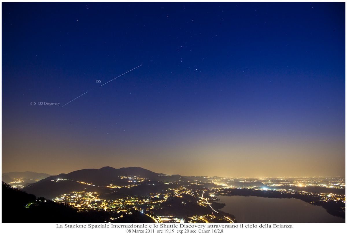 Quindi... se una notte d’inverno (o in qualunque altro periodo dell’anno) un viaggiatore... osservasse una stella luminosa muoversi fra gli astri è altamente probabile che in quel momento egli stia posando l’occhio sulla ISS e che egli sia a sua volta osservato dagli astronauti che ci vivono sopra! Chiunque voglia provare l’ebrezza di scrutarla nel cielo, dovrà consultare alcuni siti specializzati (tipo www.heavens-above.com) i quali forniscono mappe e orari di passaggio molto precisi in funzione del sito di osservazione! L’utilizzo di un piccolo binocolo, permetterà anche di vederne la struttura a moduli ed i pannelli solari; una macchina fotografica digitale su cavalletto mostrerà una strisciata come da foto allegate.