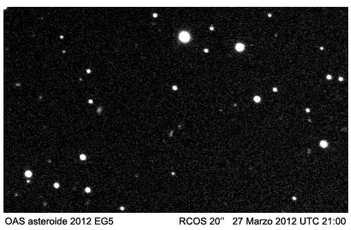 Il 13 marzo, il telescopio Pan-Starrs delle Hawaii, scopre l’asteroide siglato 2012 EG5, un pezzo di roccia dal diametro stimato di circa 60-80 metri.
